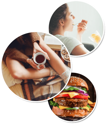 So you can enjoy the thrill of a juicy fast-food burger … the pleasure of a plate of pasta … the comfort of a pint of ice cream while curled up on the couch, watching TV.